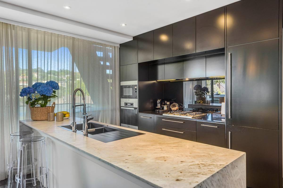 - Polished stone kitchen with top-of-the-range Miele gas stove and integrated refrigerator