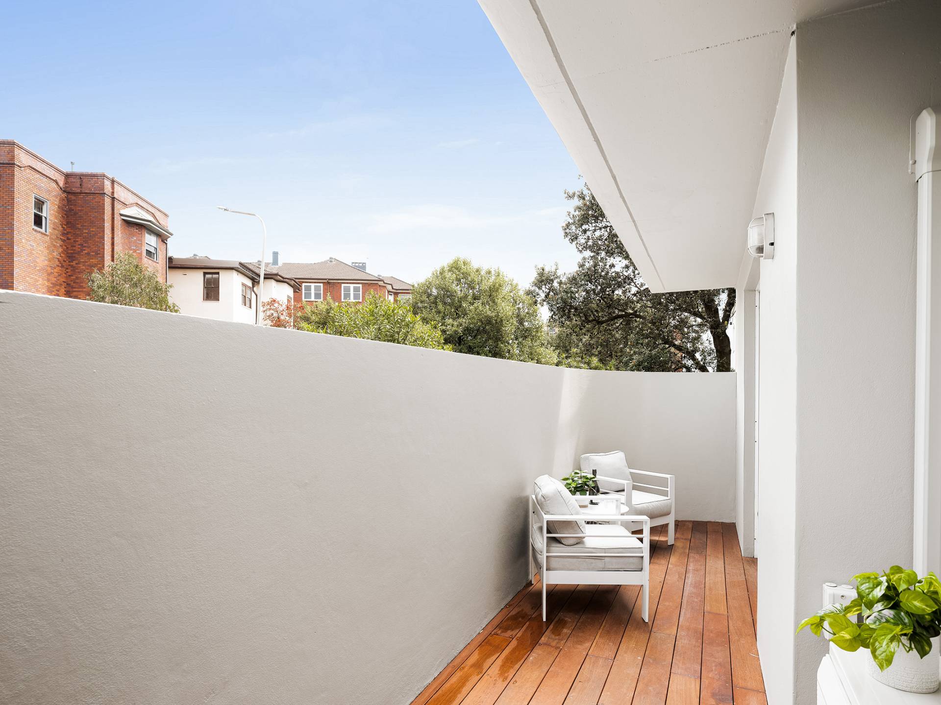 · Private timber-decked terrace with high wall