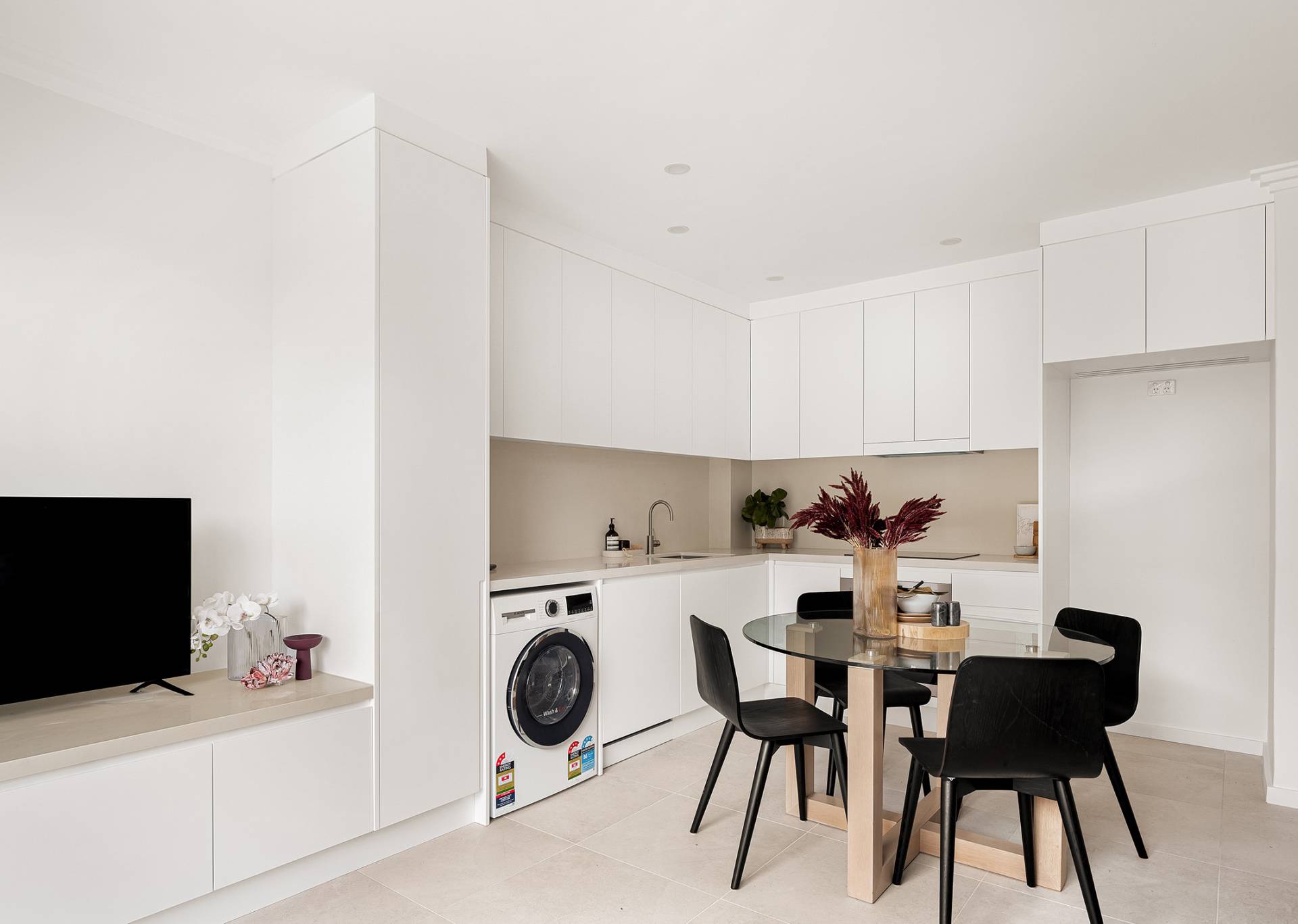 · Internal laundry, fresh all-white interior scheme