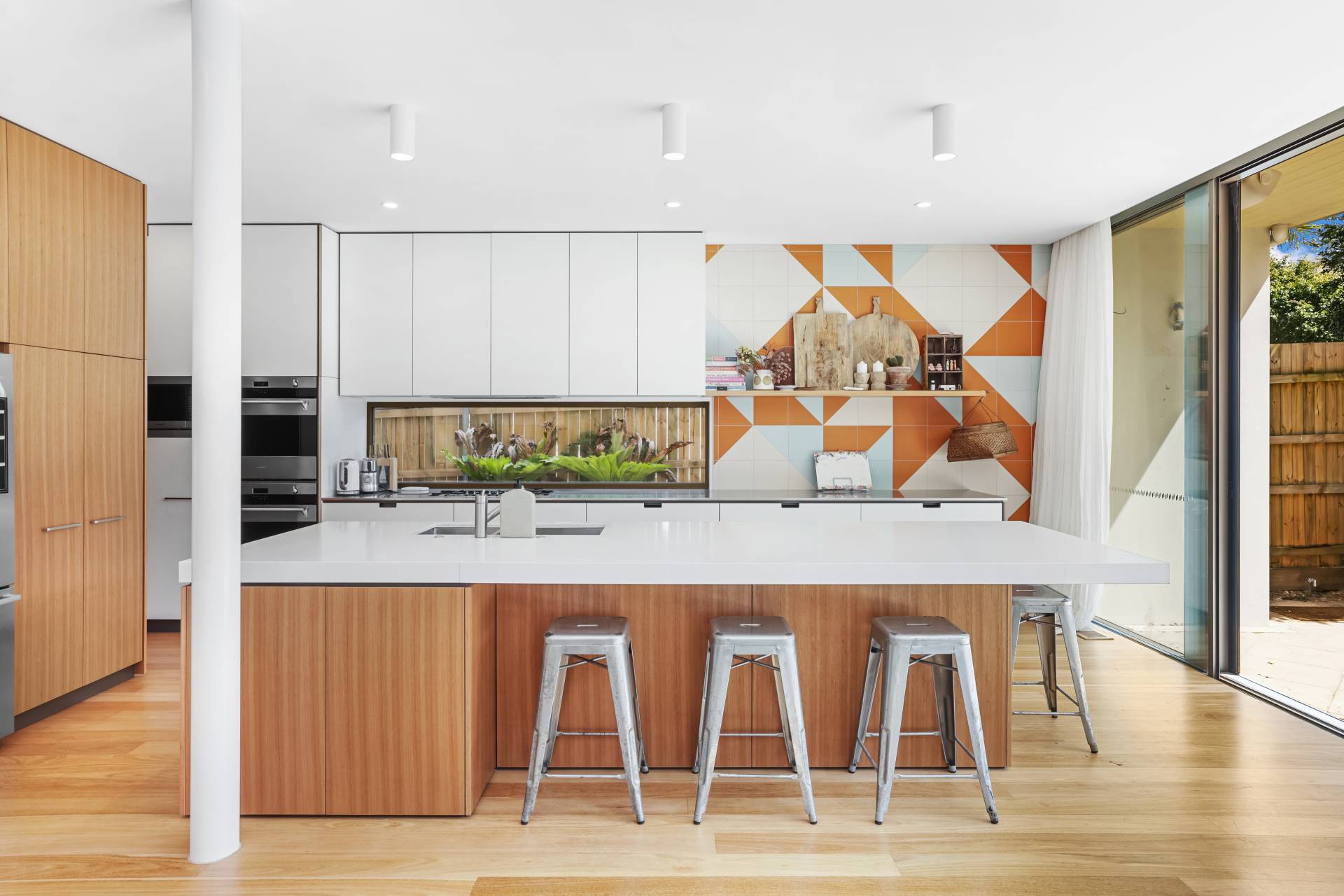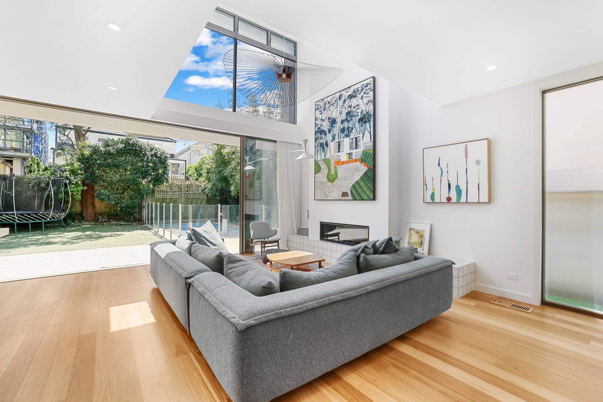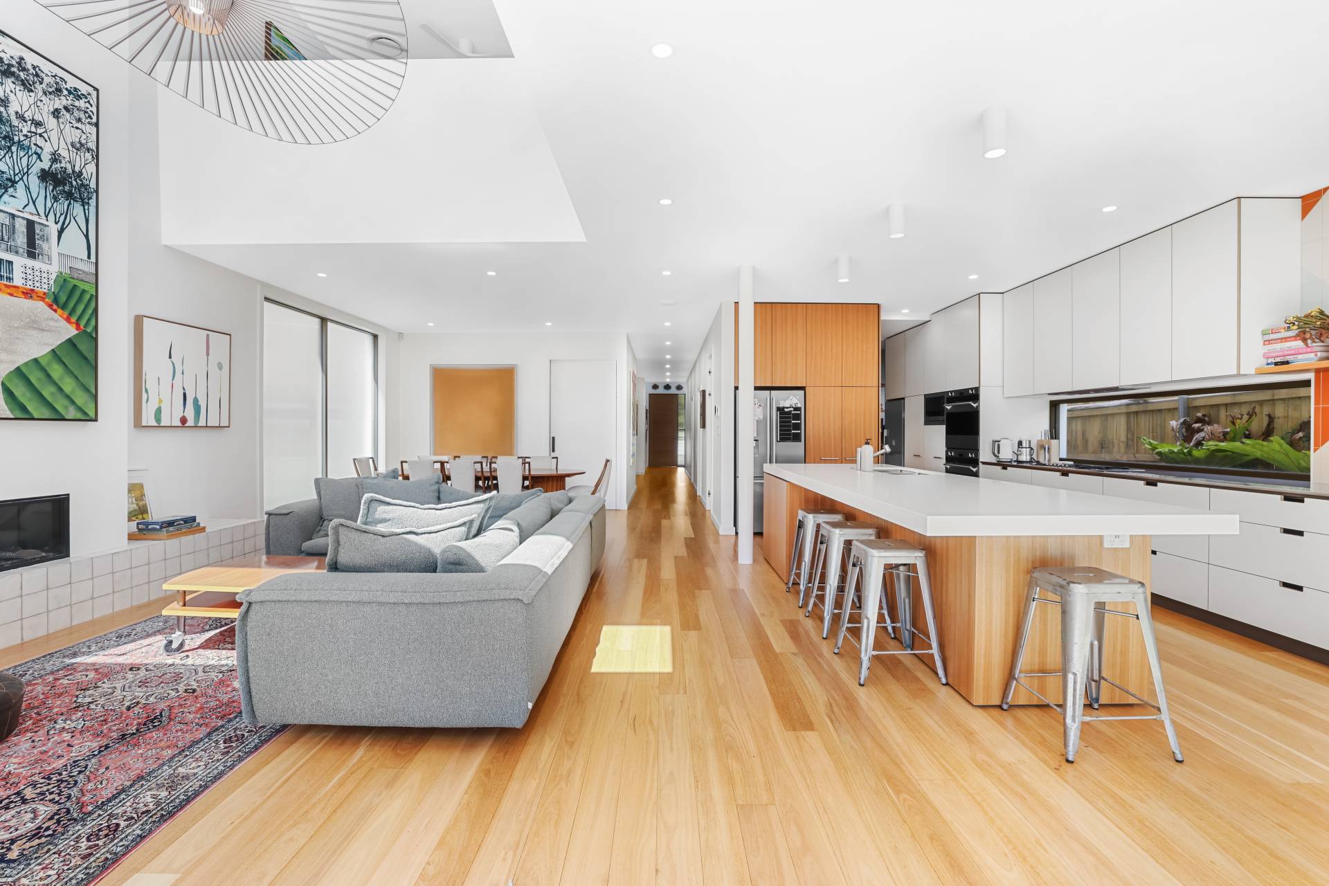 -Open plan kitchen/living with double height void flowing to outdoor entertaining