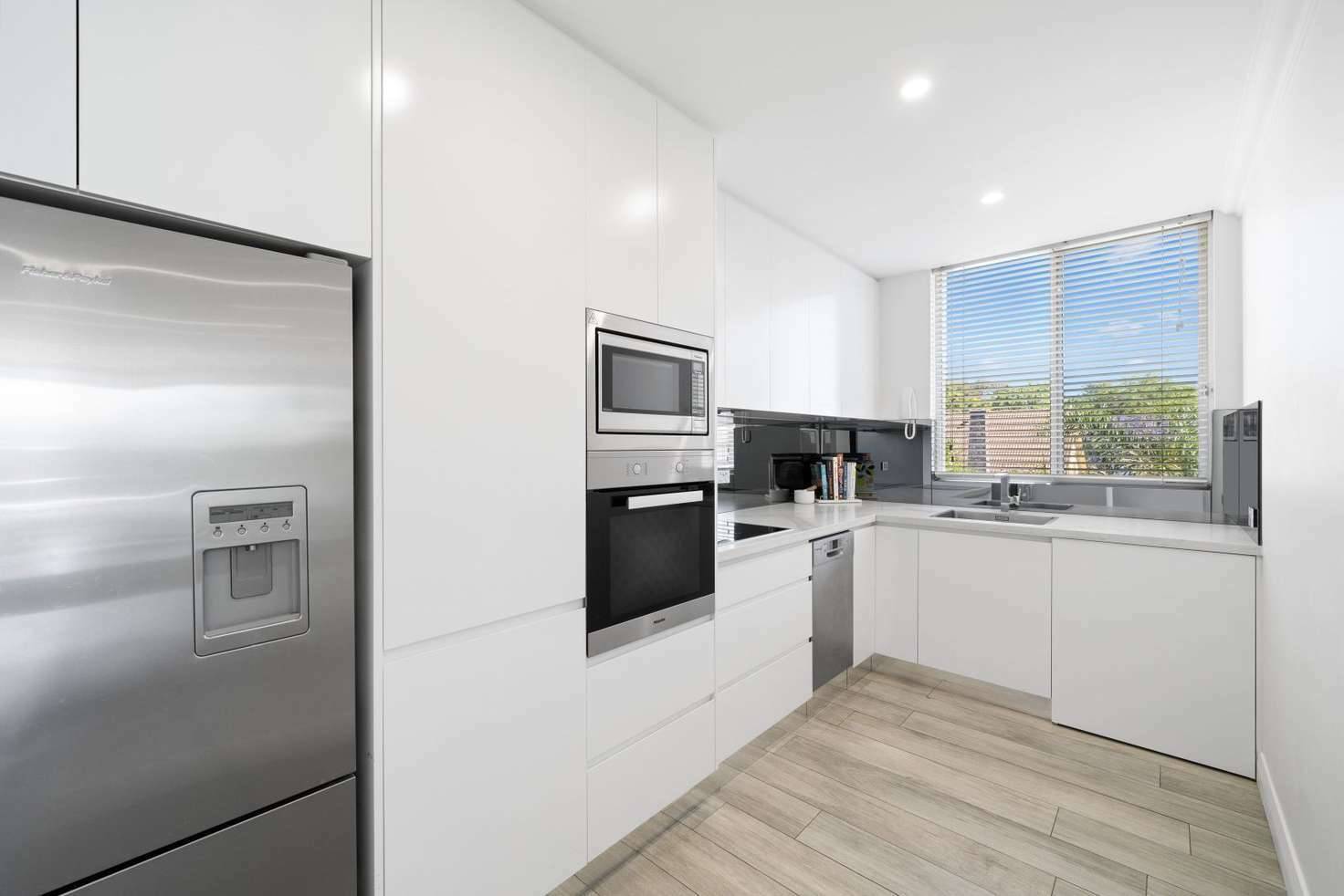 A sleek white modern kitchen, (fridge and microwave included) has been superbly appointed with Caesarstone benchtops, Miele appliances, extensive cupboards and internal laundry (washer dryer included).