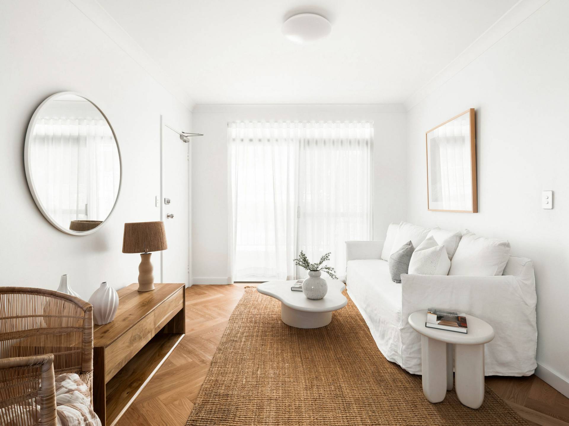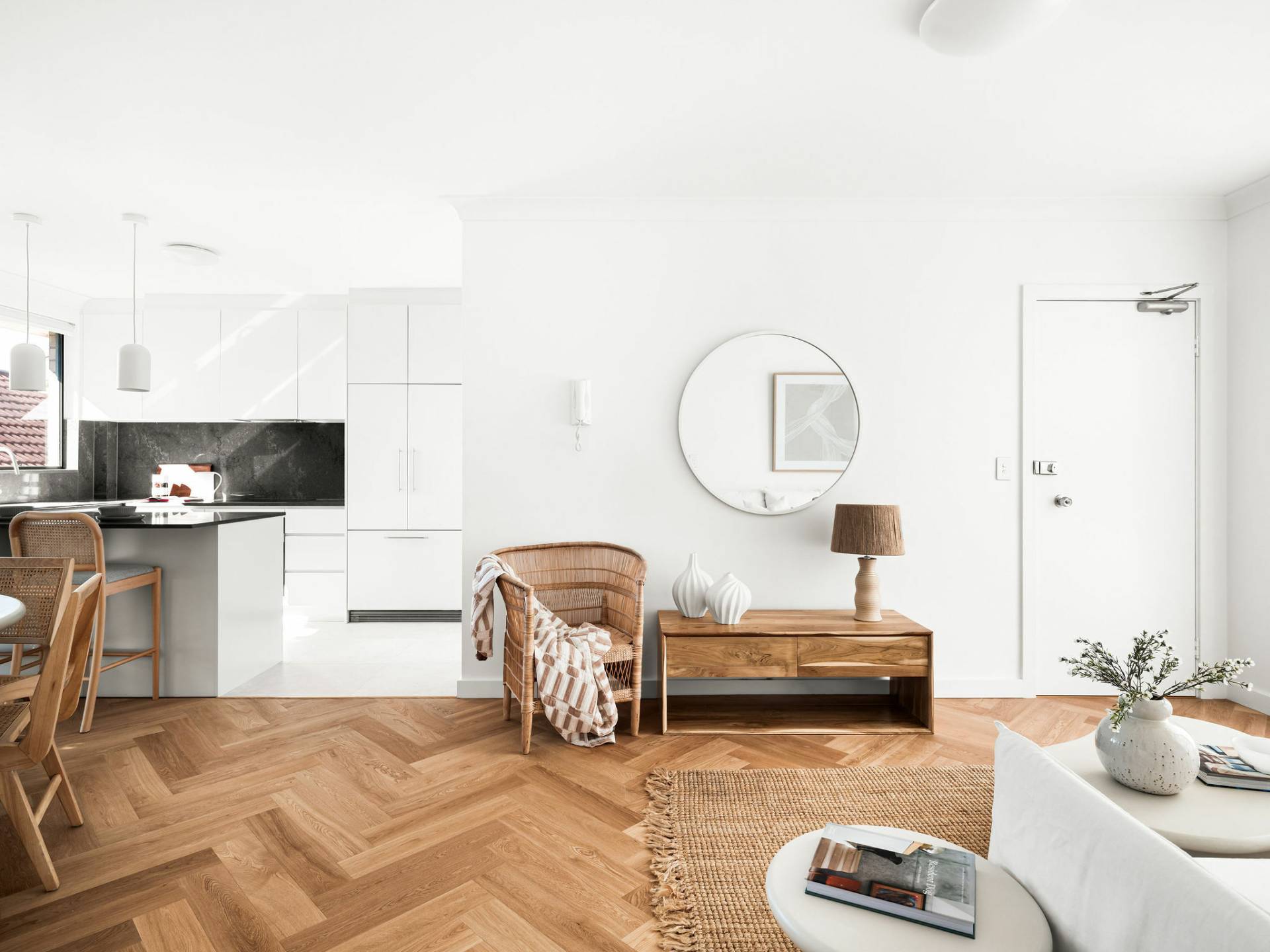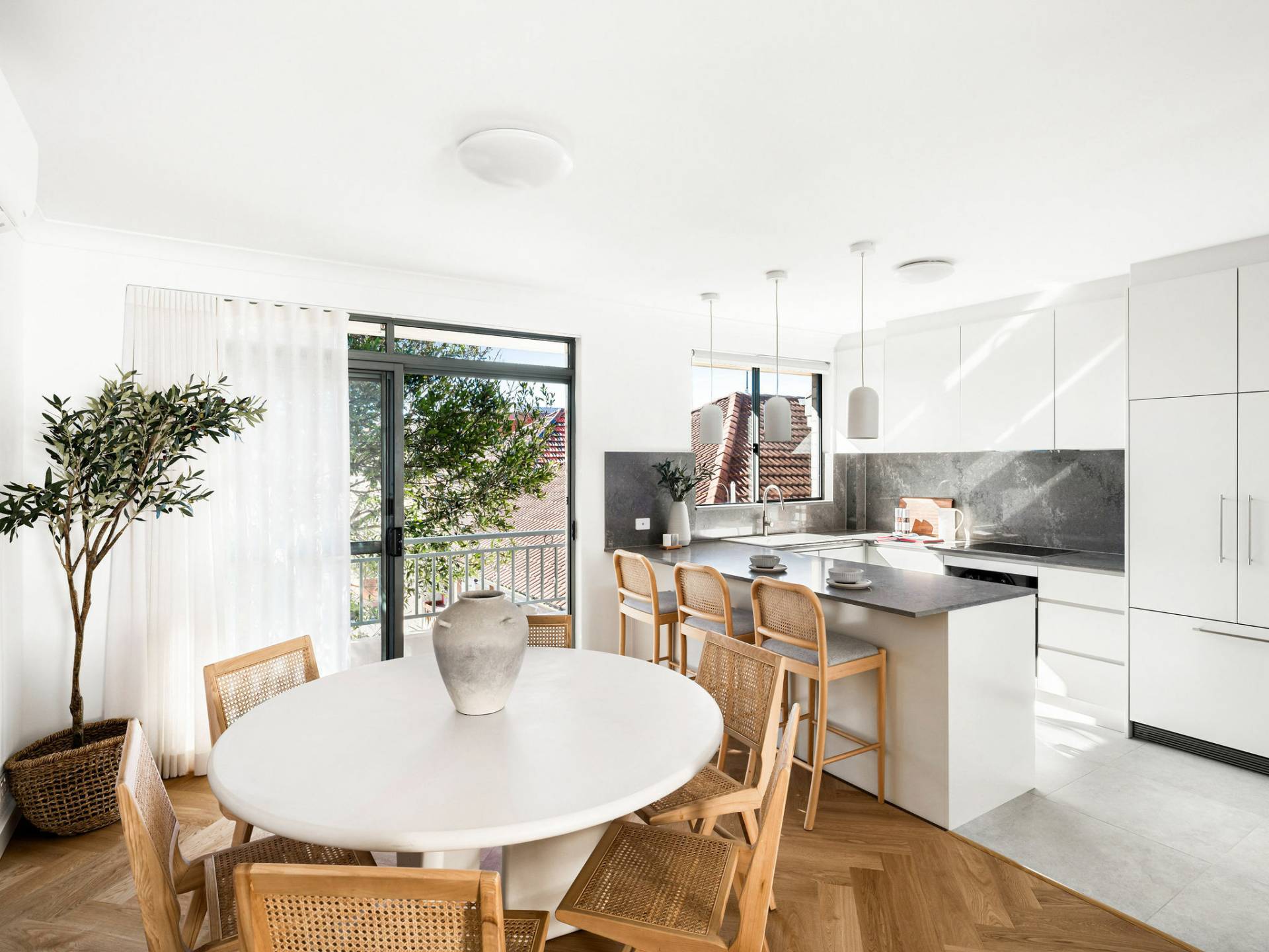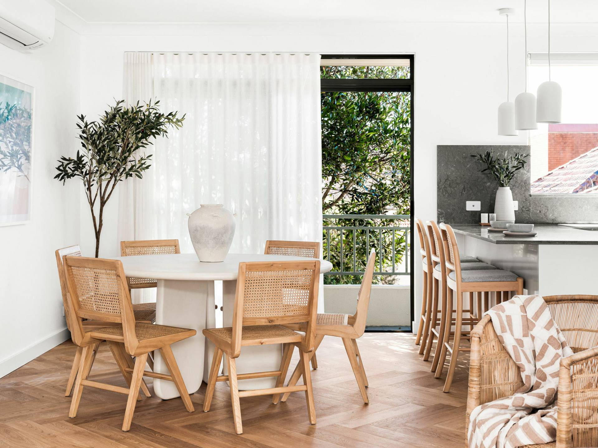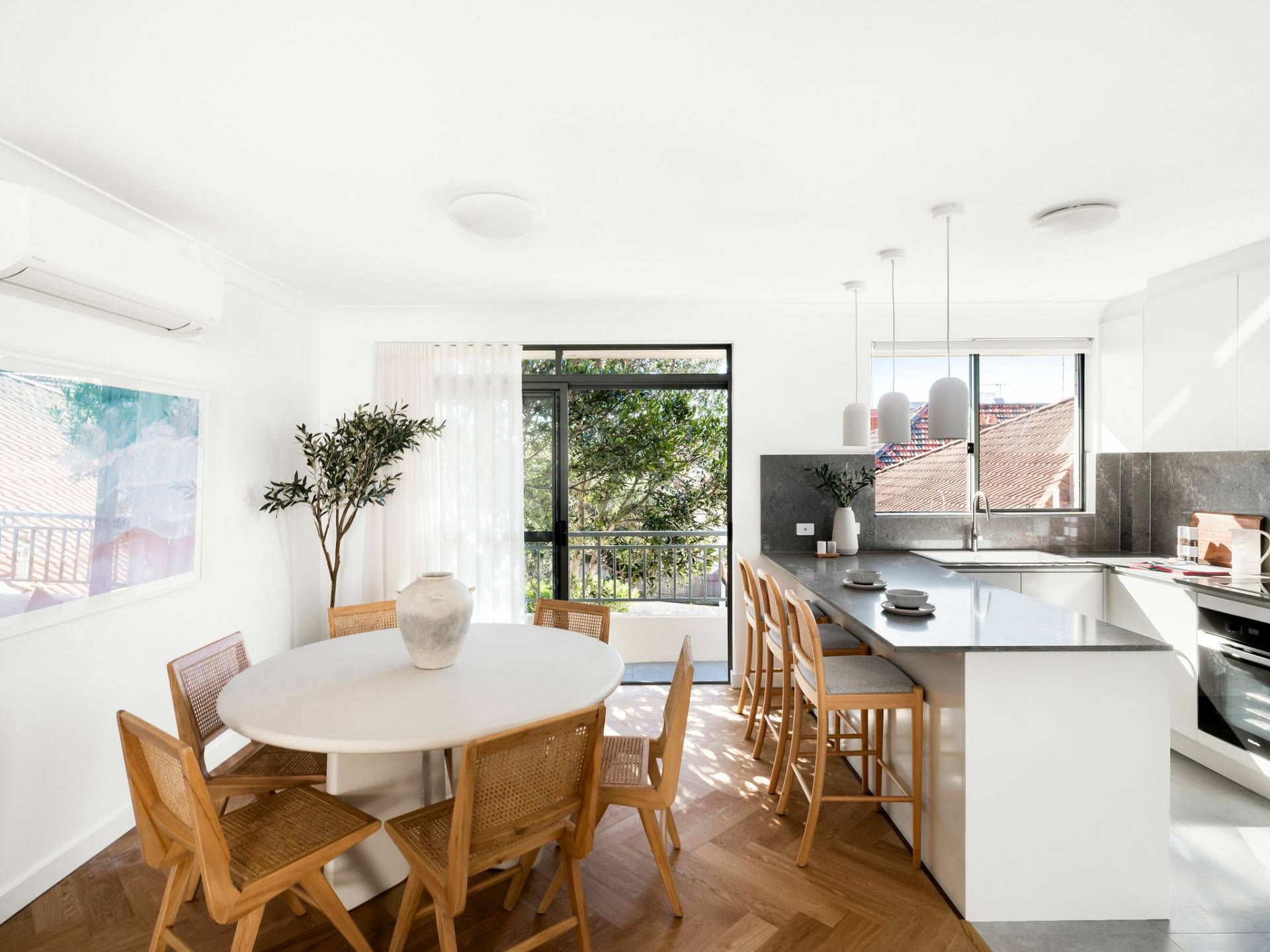 • Elegant herringbone parquetry floors, Daikin r/c a/c