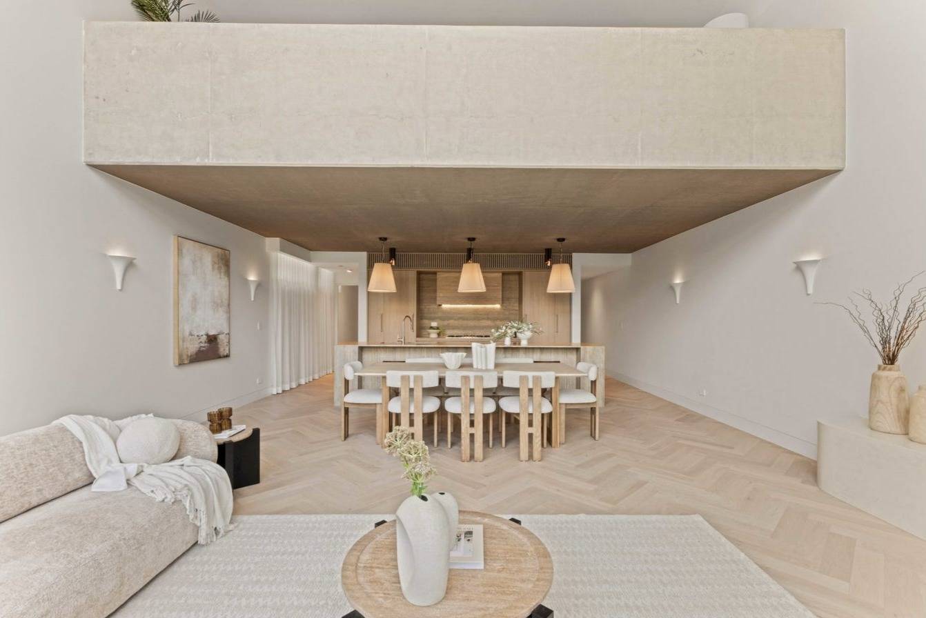 Step inside to discover sleek, light-filled interiors enhanced by soaring high ceilings, parquet flooring, and skylights that invite natural warmth throughout the home. A beautifully appointed designer kitchen and bathrooms elevate everyday comfort, while the seamless open-plan layout flows effortlessly to an alfresco entertaining space — perfect for hosting family and friends. With generous bedrooms, ample storage, and a two-car garage, this home has been crafted to balance functionality with refined design.