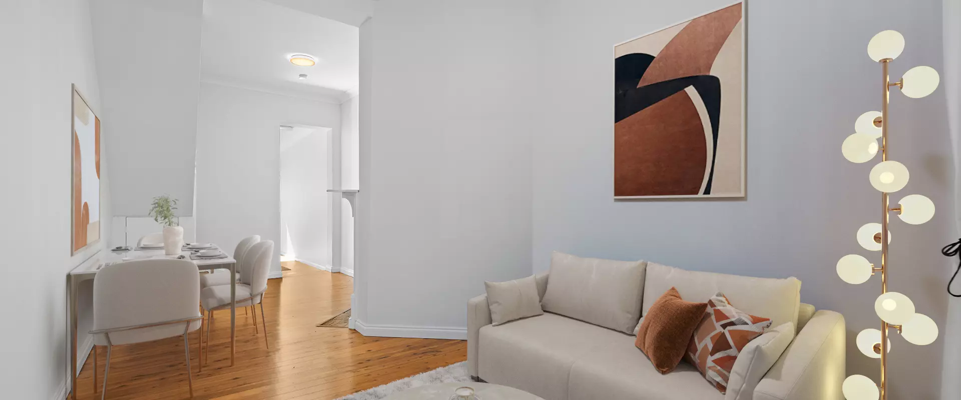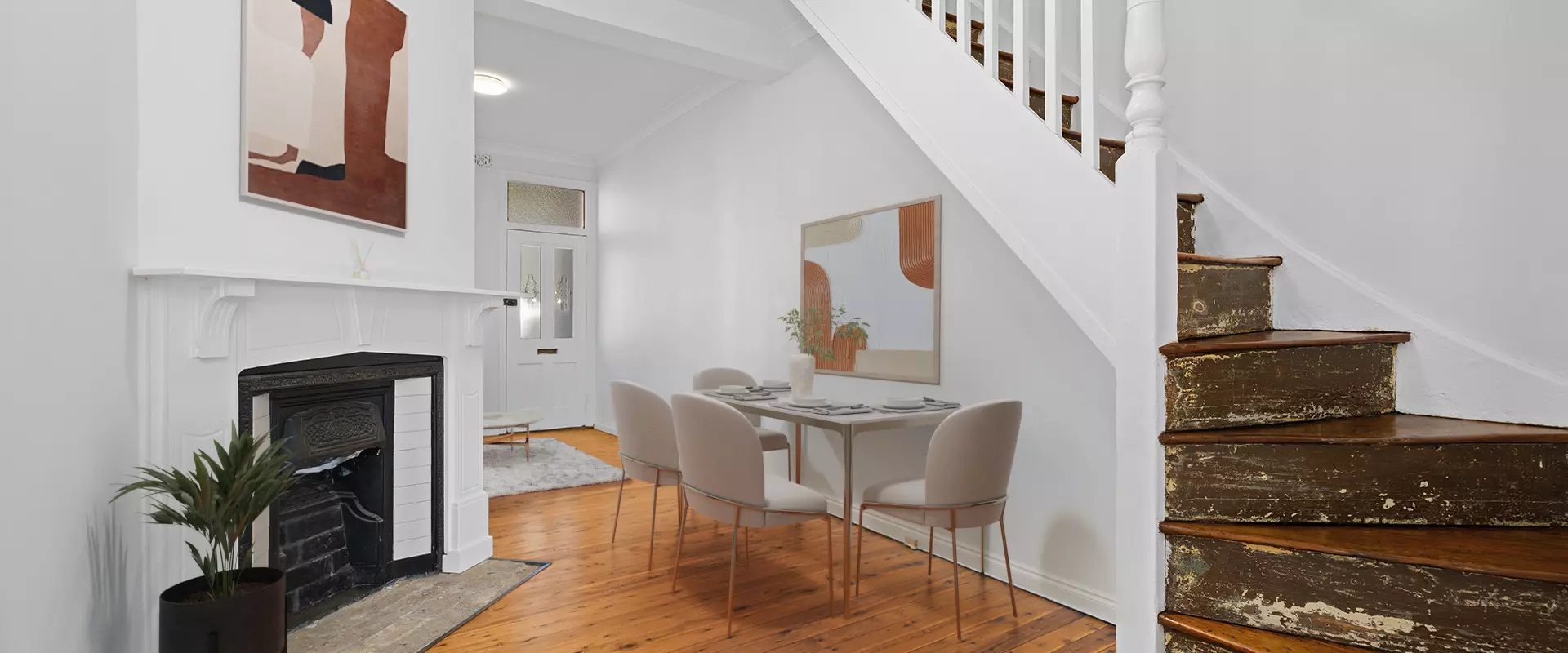 This charming two-level terrace offers a versatile layout with one bedroom plus a study or potential second bedroom.