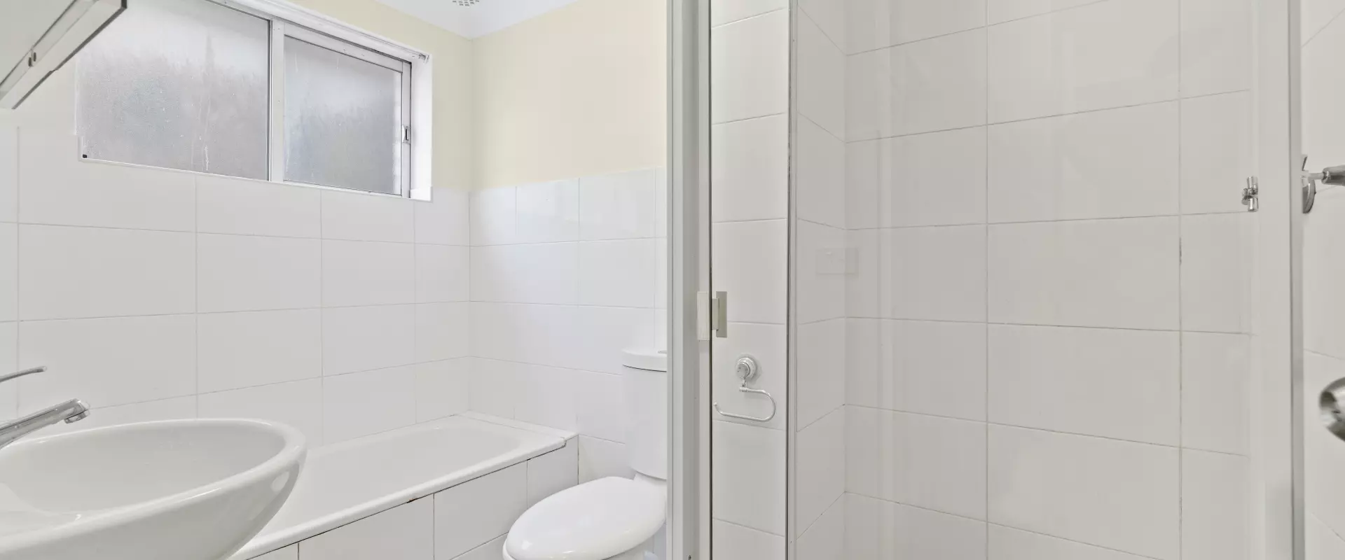 • Modern bathroom with separate bath/ shower