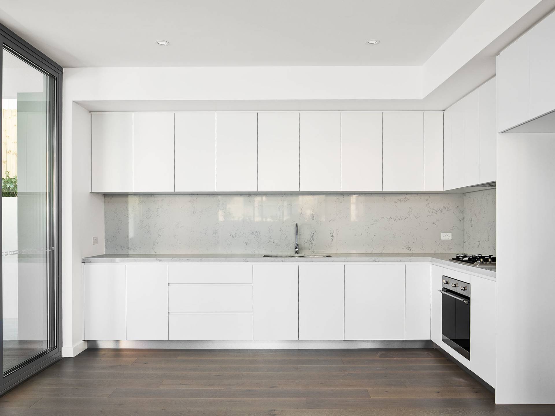 No common walls ensure an inviting, villa-like feel in this sun-filled, contemporary apartment with an entry hall flowing to open-plan living and dining areas and a sleek stone kitchen with quality appliances including gas cooktop, oven and dishwasher. Off the entry hall is the double bedroom (with built-ins and glass doors opening to a terrace) and a fully tiled bathroom with laundry facilities.